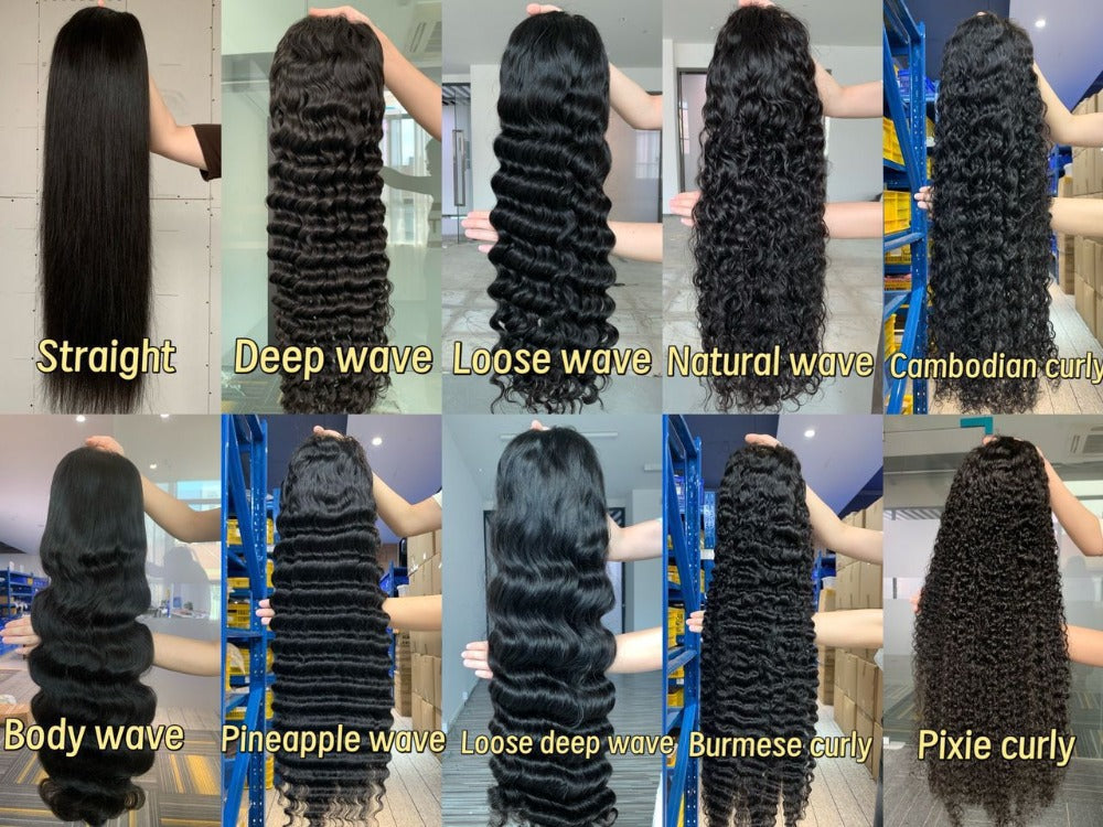 Featured Textures: Straight, Deep Wave, Loose Wave, Natural Wave, Cambodian Curly, Body Wave, Pineapple Wave, Loose Deep Wave, Burmese Curly, and Pixie Curly.